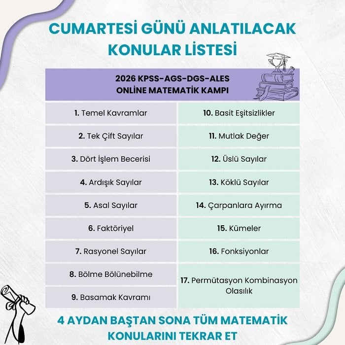 2026 DGS-ALES-KPSS-AGS ONLİNE MATEMATİK KAMPI (4 AYDA TÜM KONULARI BAŞTAN SONA TEKRAR ET)